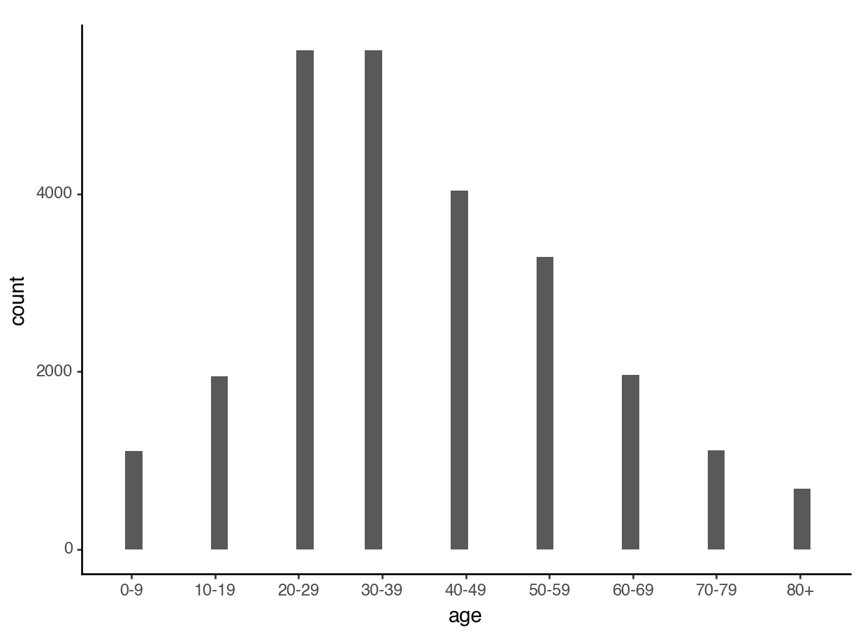 In this example, we have a limited set of possible values for age: 0, 1, 2, …., 100. We call this discrete.